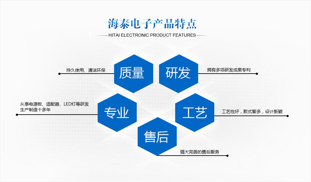 威海海泰電子有限公司成立于2003年(原威海雙豐通訊設備有限公司),是一家致力于開關(guān)電源、LED電源、電源適配器、手機充電器、醫(yī)療電源等自主研發(fā)、生產(chǎn)和銷售為一體的高新技術(shù)企業(yè)。公司秉承 “以顧客為中心”的宗旨,堅持“以人為本、質(zhì)量至上 、節(jié)能降耗、清潔環(huán)保、持續(xù)改進 ”的質(zhì)量和環(huán)境方針,科學高效的組織生產(chǎn),不斷的提高產(chǎn)品質(zhì)量。先后通過了ISO9001質(zhì)量管理體系認證、GJB9001C質(zhì)量管理體系和GJB3001C質(zhì)量管理體系和ISO14001環(huán)境管理體系認證。